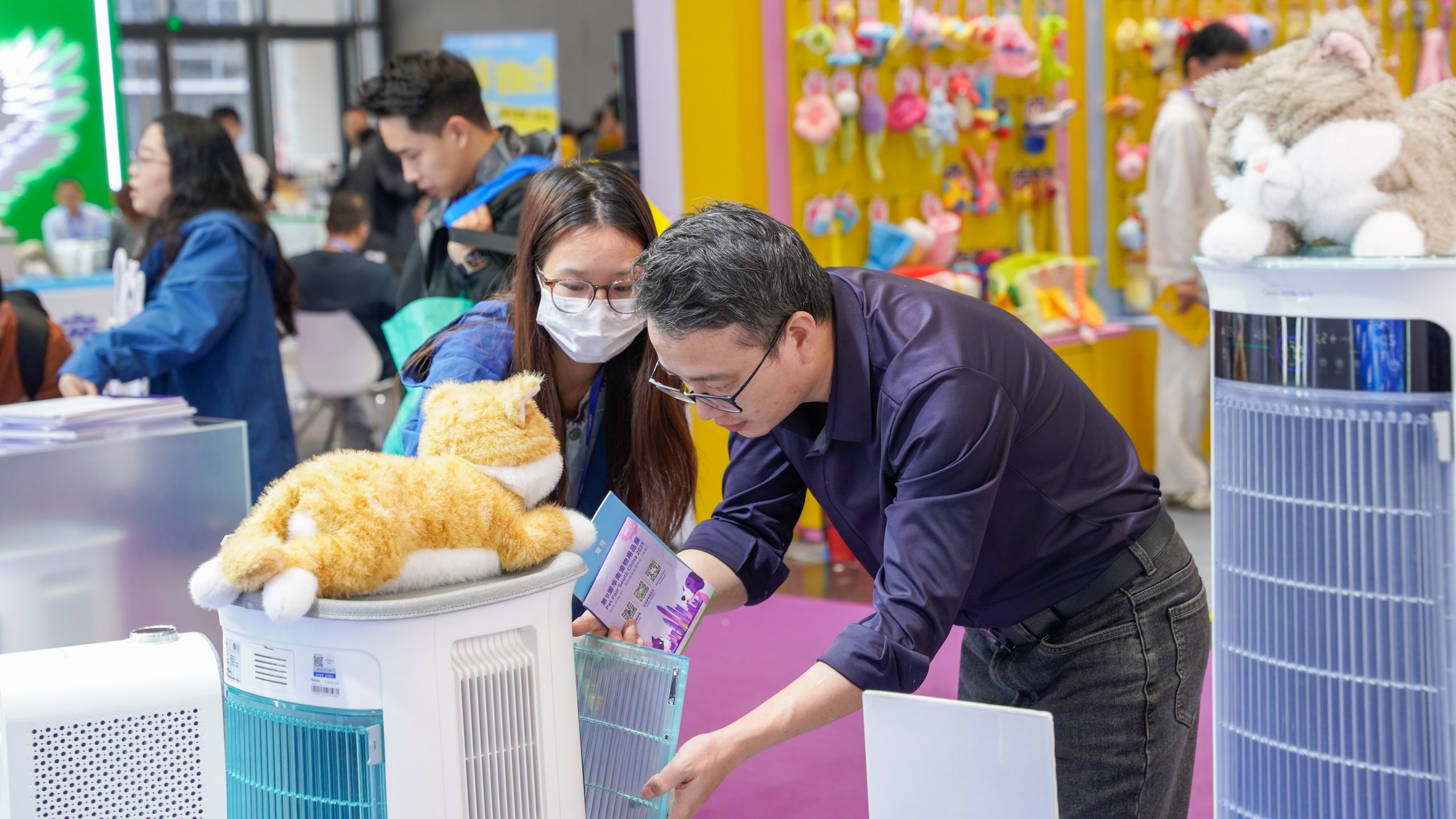 体验空间内模拟真实“养宠家居环境”,重点展示Umi宠物净化器的智能净化设计与运作效果。观众可沉浸式感受其在真实养宠场景中的净化能力,清晰看到其如何快速捕捉宠物浮毛。现场配备专业工作人员,全程讲解产品的技术原理、核心优势及操作方法,耐心解答观众关于产品使用、场景适配等各类疑问,让大家深入理解“科技如何让养宠更轻松”的品牌主张。