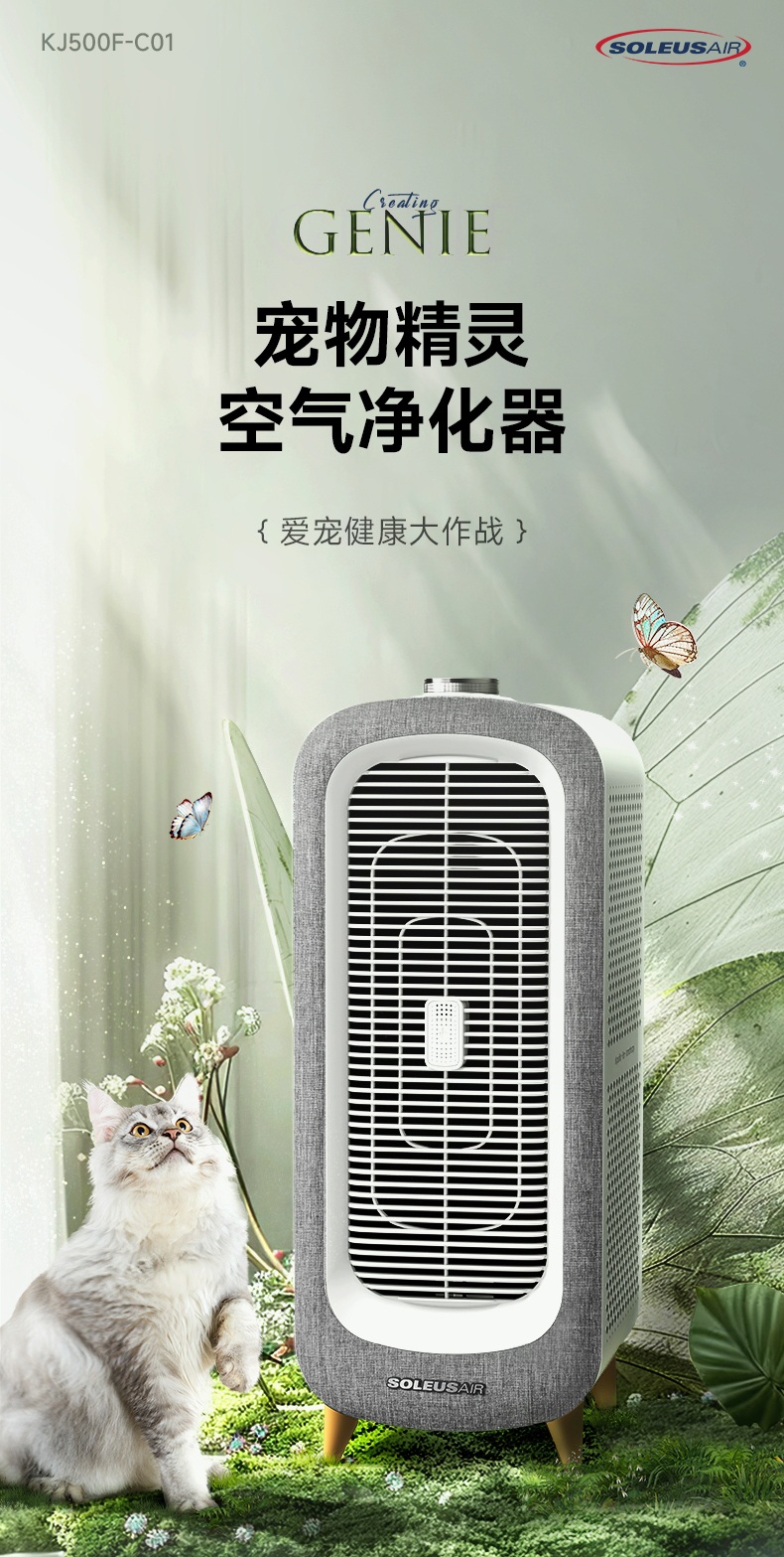 针对中小养宠空间的净化需求,舒乐氏推出宠物净化器C01,C01搭载5重专项洁净技术,同样精准针对宠物毛发、异味、病菌、过敏原四大核心痛点,净化能力毫不逊色。其机身设计轻巧灵动,适配中小空间,为宠物和主人营造洁净健康环境。